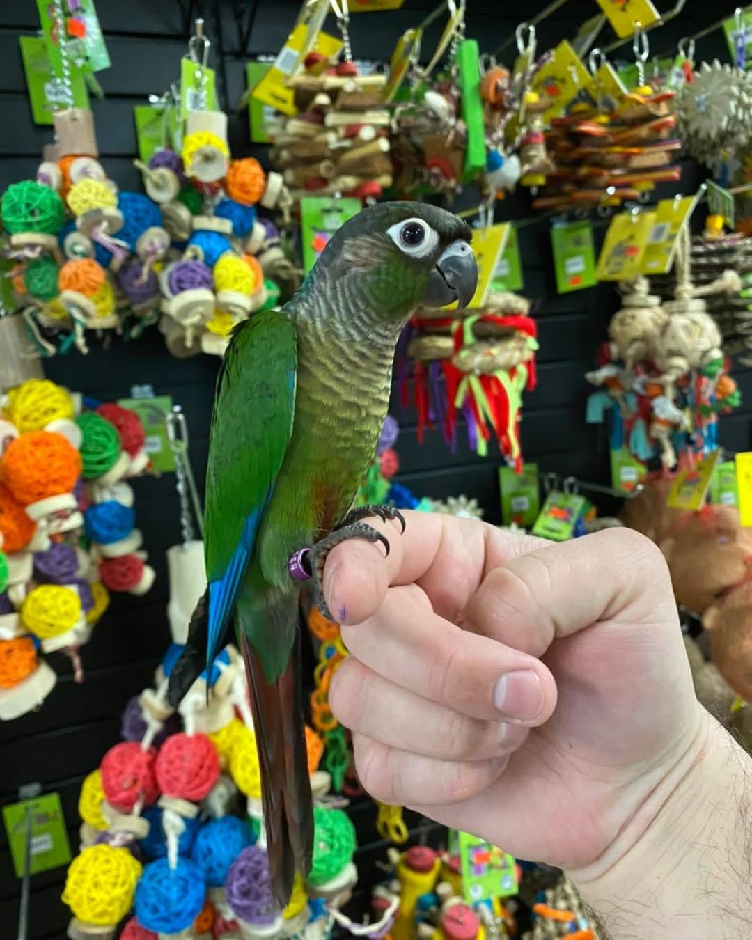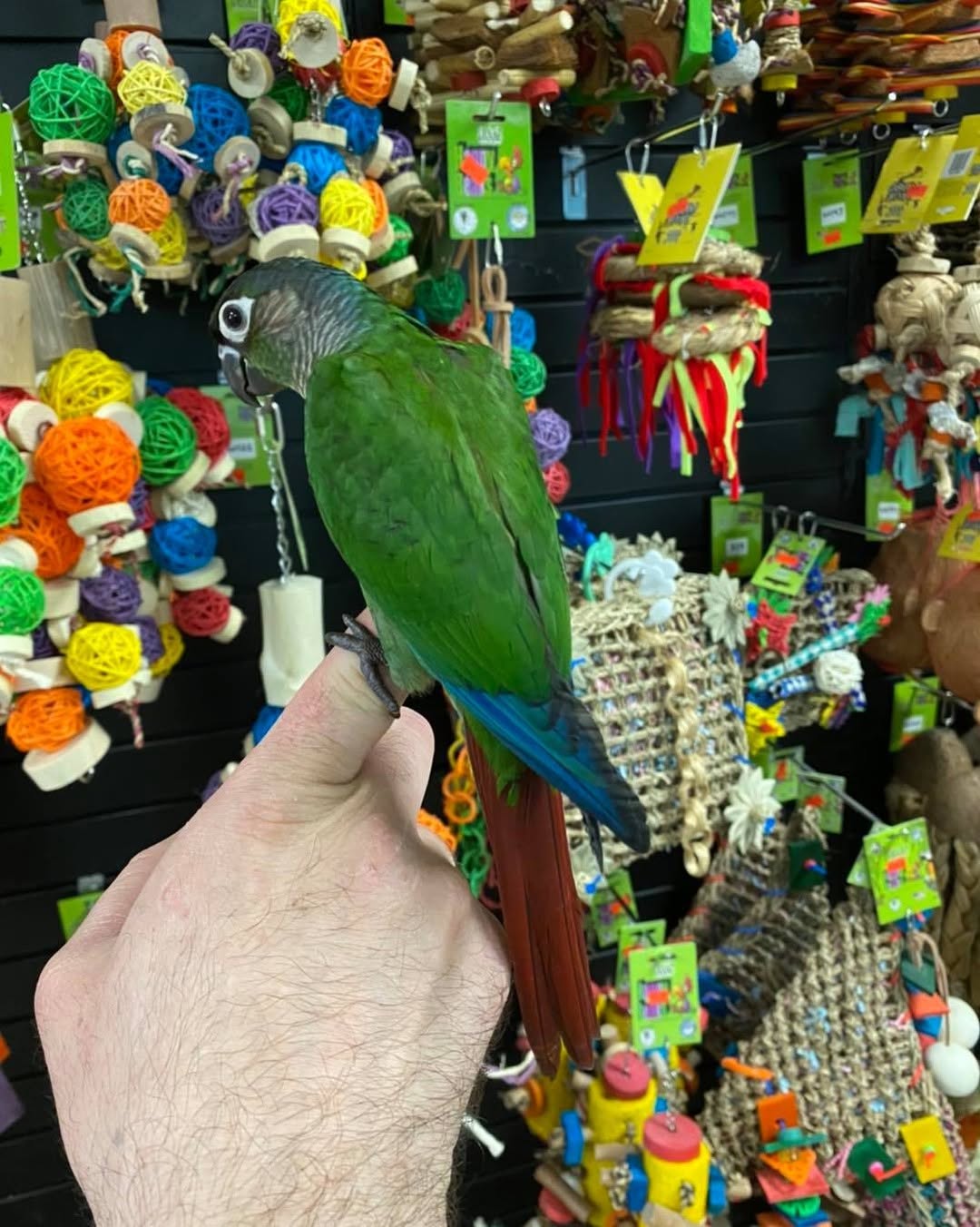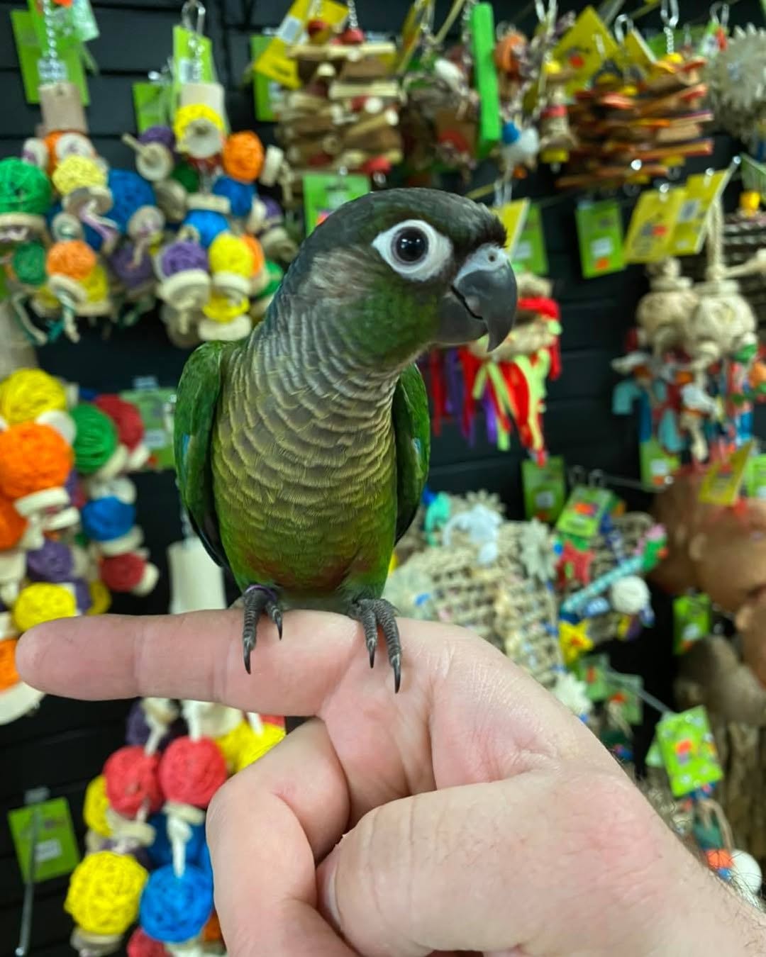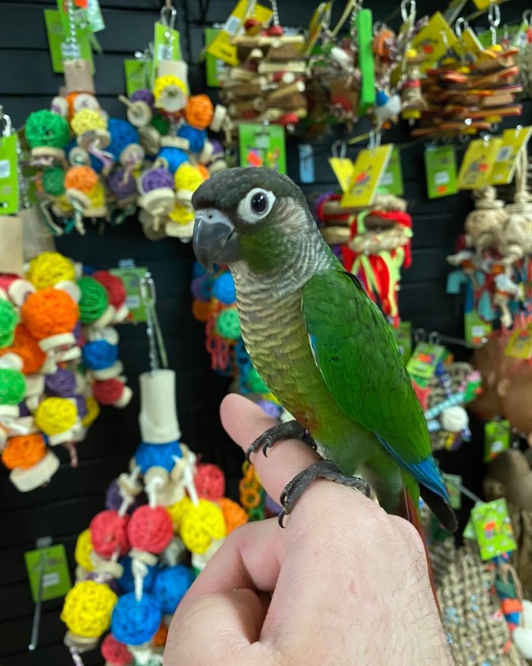 The Green Cheek is quieter than many of its conure cousins so can live in built up housing areas with less concern about noise for neighbours.